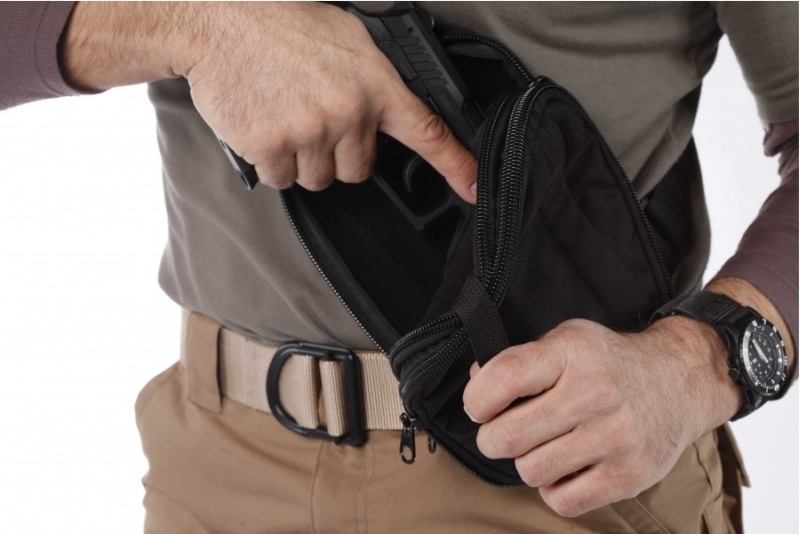 Вот: может будет полезно, сумка-кобура с универсальной кобурой внутри, которая вскрывается моментально дёрганием за стропу.